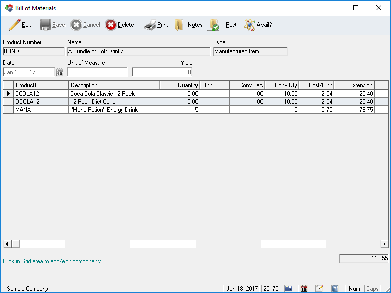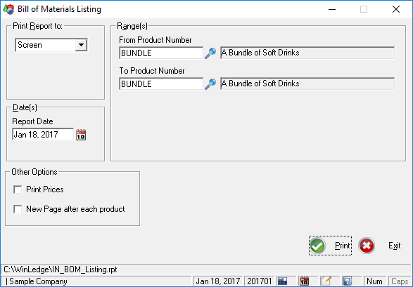 The Inventory module is a complete system for tracking the goods in your company, however if you are in the manufacturing business you might want a more detailed system for tracking the building of goods. That's where the WinLedge Bill of Materials comes in. This module is designed to augment the existing Inventory system and therefore the Inventory is required for use.