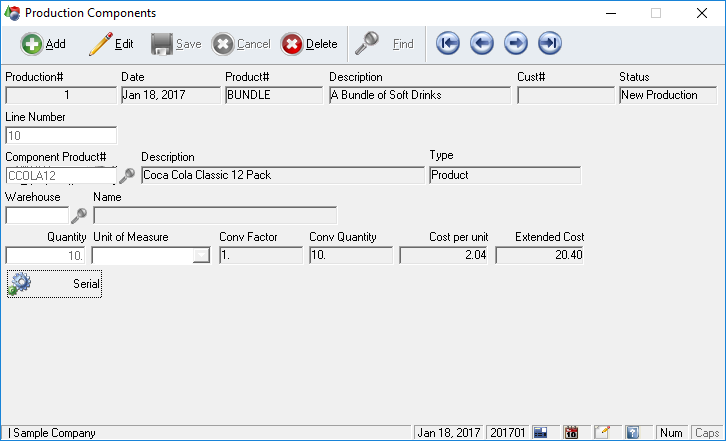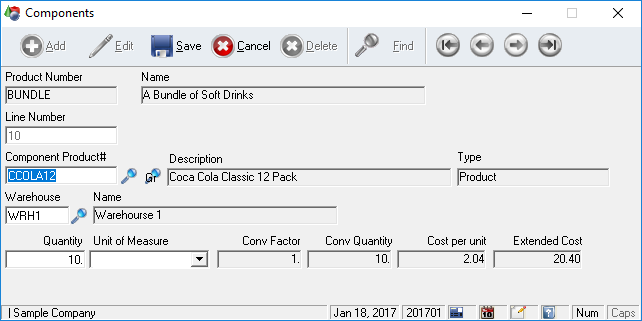 The Bill of Materials portion is where you define the structure of the finished good. Here you specify the components that make up the finished good, the yield values etc. Next you move to the actual production of the goods where you print off a production ticket to send back to the warehouse for building. You can then transfer all of this information over and bill in the usual manner. Of course, along the way there are lots of reports available to monitor the process.