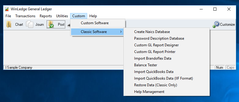 Unlike many of the smaller accounting systems available, Winledge was designed from the ground up to be quick to enter data. Rather than click, click, click, simply stay on the keyboard for true “heads-down” data input. You see clicking is fine when you only have say four transactions to enter, but when you have a hundred entries to make you will certainly appreciate the increase in speed.