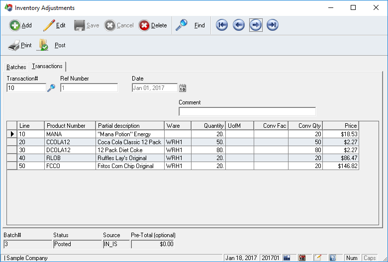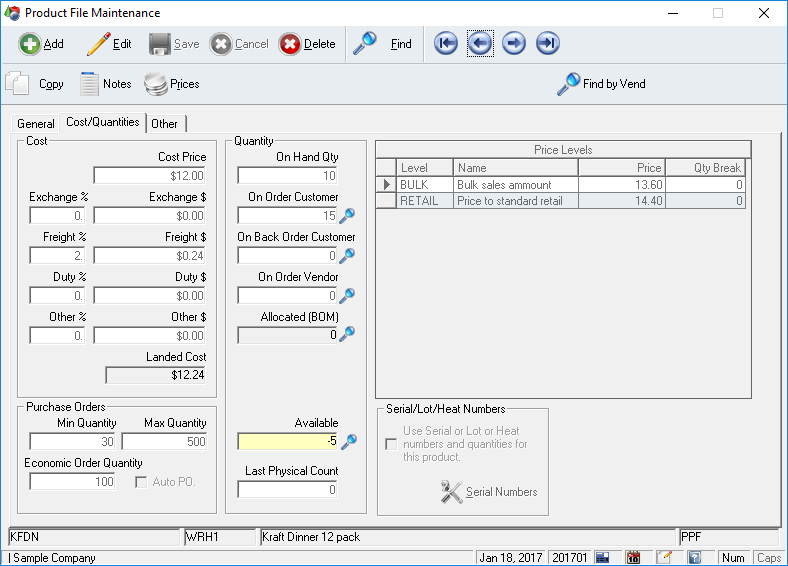 With the WinLedge Inventory module, you will have no problem keeping a tight control on your products and services. The module can run stand-alone, but the real power comes when integrated into the Accounts Receivables or Order Entry modules. Need multiple warehouses, serialization, unlimted price levels, landed cost calculations? Winledge has that and much more.