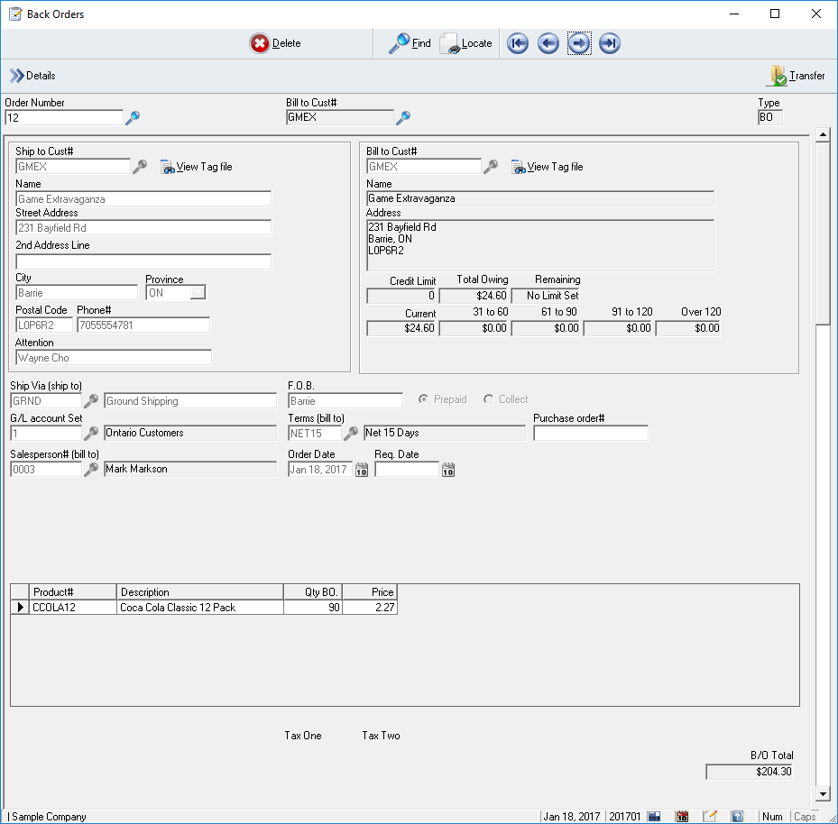 Do you need to control back orders? With Winledge Order entry, back order control is just a matter of saying yes to back order during shipping. Later you can produce back order reports or have the system tell you about back orders when the good are finally received