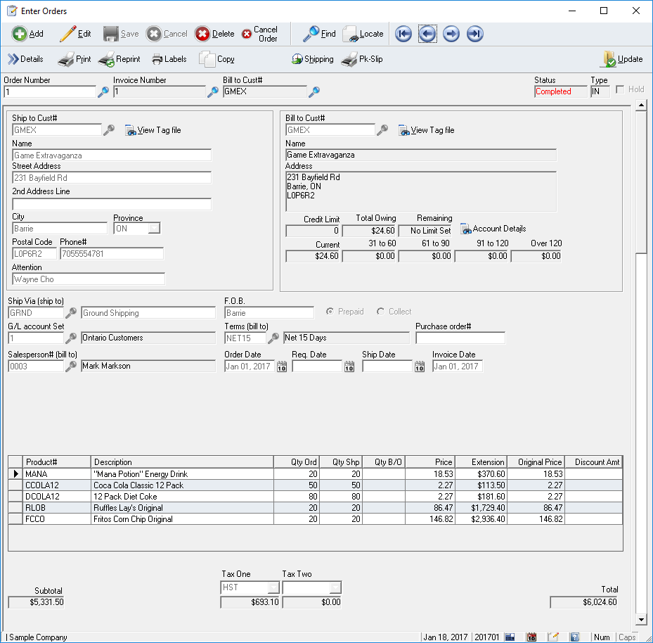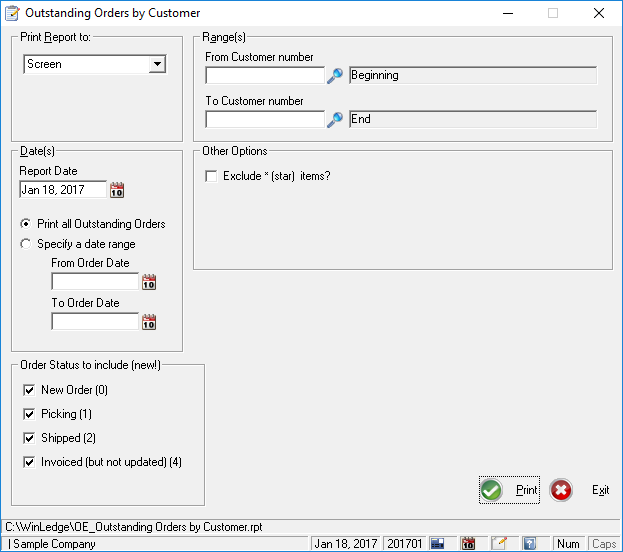 Winledge Order Entry comes with more than thirty different reports to track your order process. Outstanding by customer, product, salesperson, group, for orders and back orders to name just a few. Seven status codes allow you to track every step of the order process which ensures timely completion of each and every order!