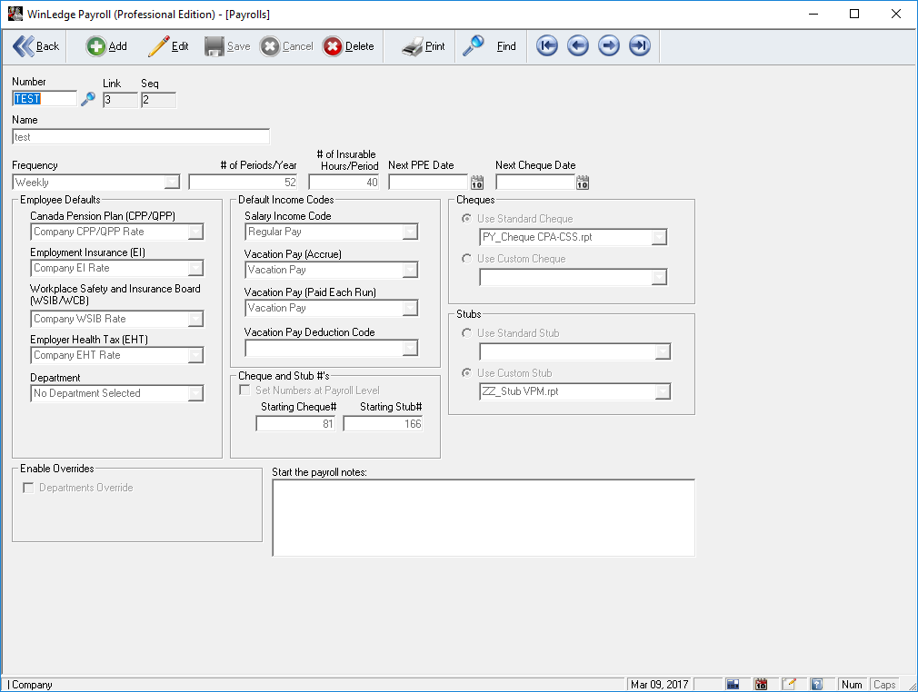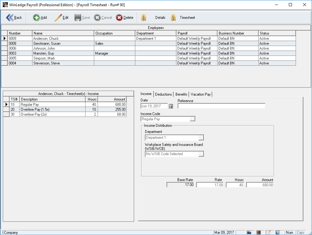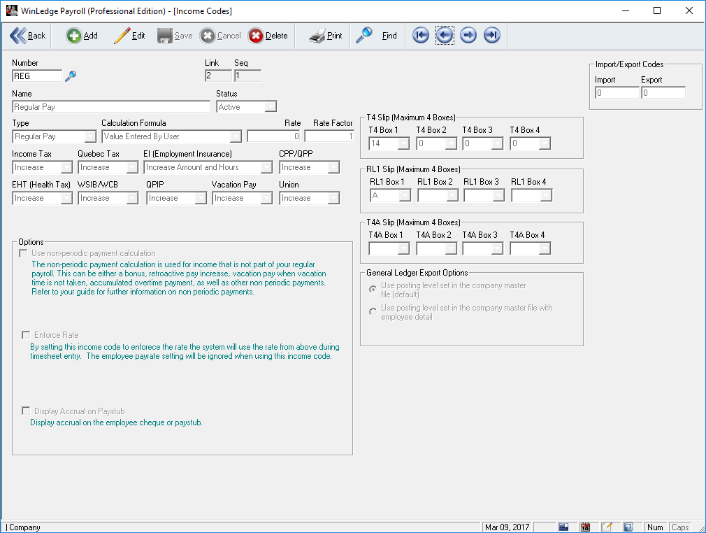 Basically you can design your own time sheet codes.  Need to enter regular pay, double time, triple or some other kind of income.  You simply define it yourself.  Need to change the way it effects tax or CPP or EI, simple toggles make all that possible.